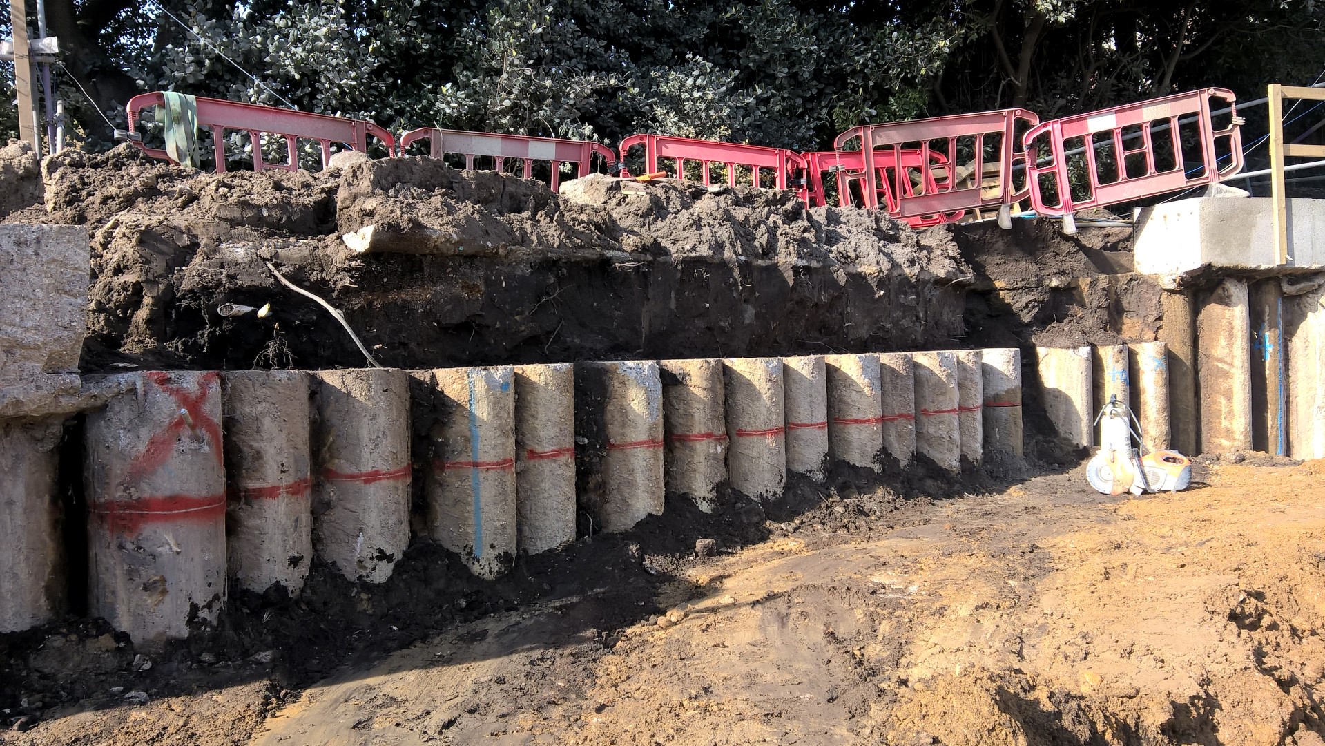 Removal and Adjustment of an Existing Reinforced Concrete Retaining Wall For Colmar Construction at Allington Road, Sandbanks, Poole.